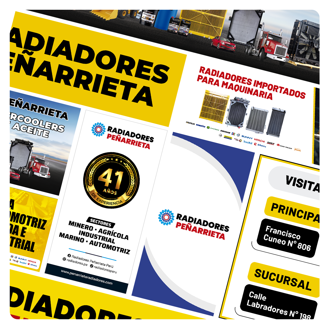 Desarrollamos el diseño, impresión e instalación de letreros, viniles y roll screen para la presentación oficial de los 41 años de Radiadores Peñarrieta, respetando las indicaciones y lineamientos del cliente. El proyecto buscó reforzar la identidad de la marca, destacar su trayectoria y transmitir solidez, experiencia y confianza en cada pieza gráfica.