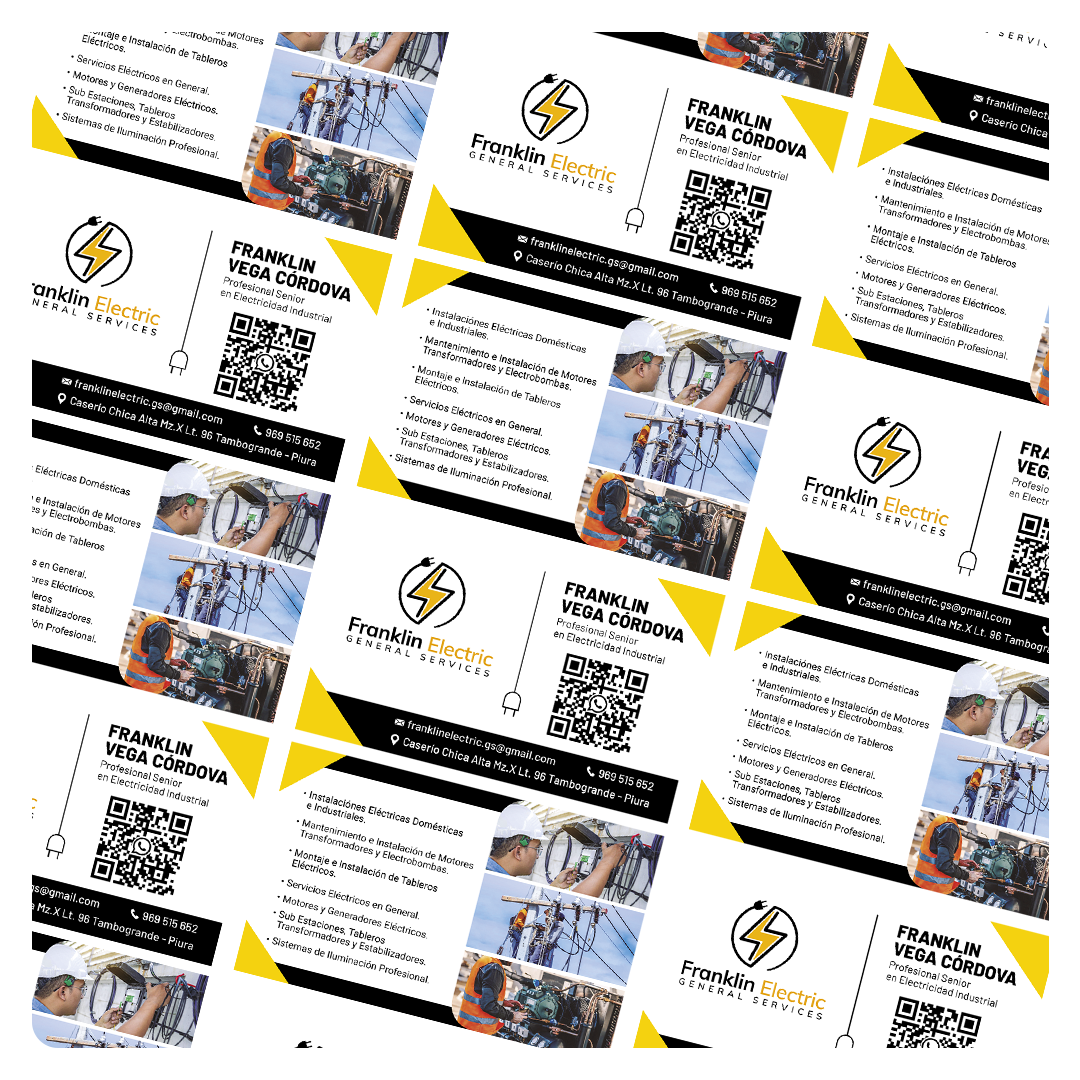 Desarrollamos el rediseño e impresión de tarjetas de presentación para Flanklin Electric, empresa de servicios generales, atendiendo de manera personalizada la solicitud y lineamientos del cliente. El resultado es una pieza gráfica clara, funcional y alineada a su identidad corporativa, pensada para fortalecer su presentación comercial y profesional.