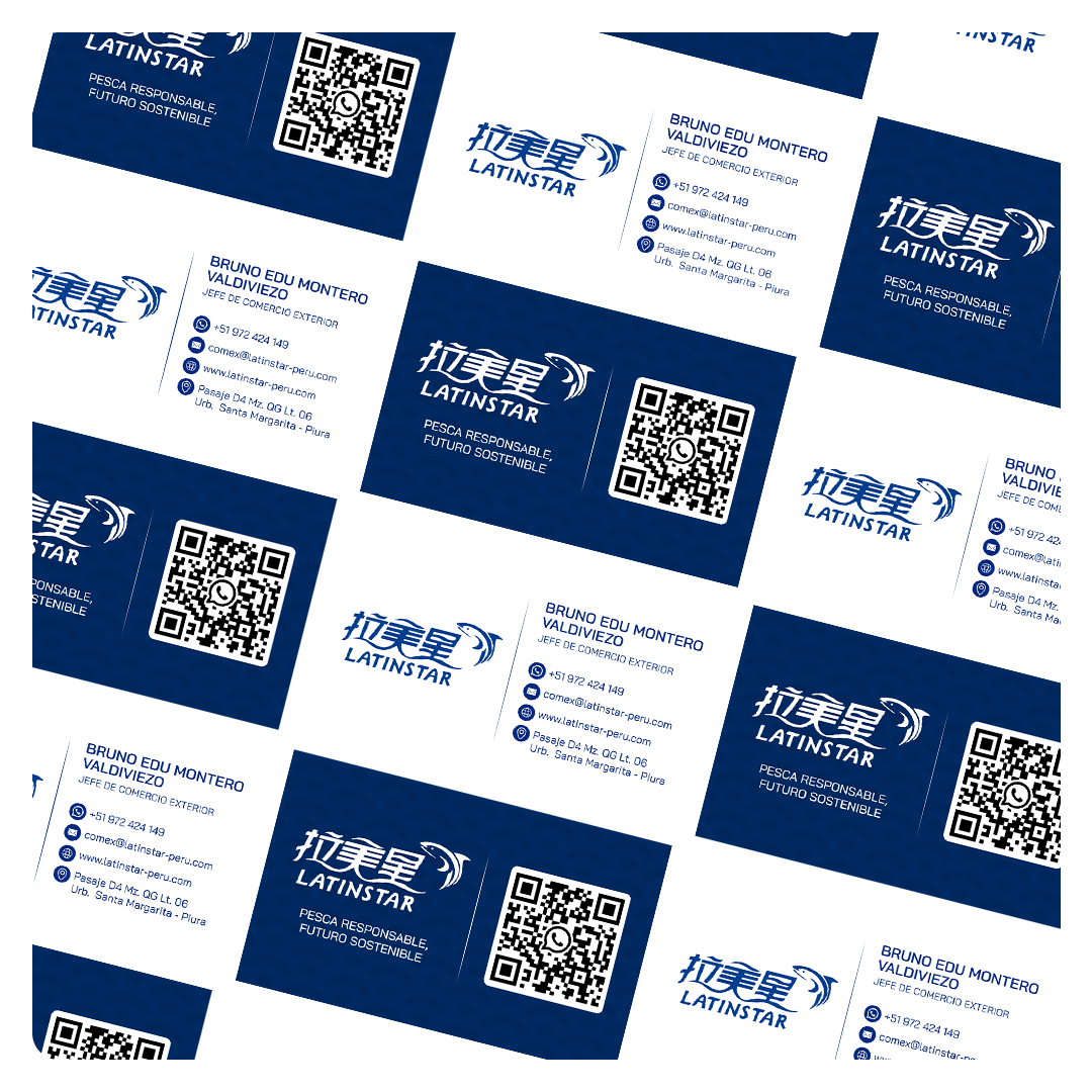 Desarrollamos el diseño e impresión de tarjetas de presentación para Latin Star, empresa pesquera exportadora, cuidando una imagen corporativa sólida, profesional y alineada a su proyección internacional. El resultado refleja confianza, identidad y presencia de marca en cada contacto comercial.